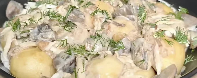 - Sisävuoro. Laita nyytit lautaselle, lisää broilerin kuidut ja sienikastike. Koristele tuoreella tillillä.